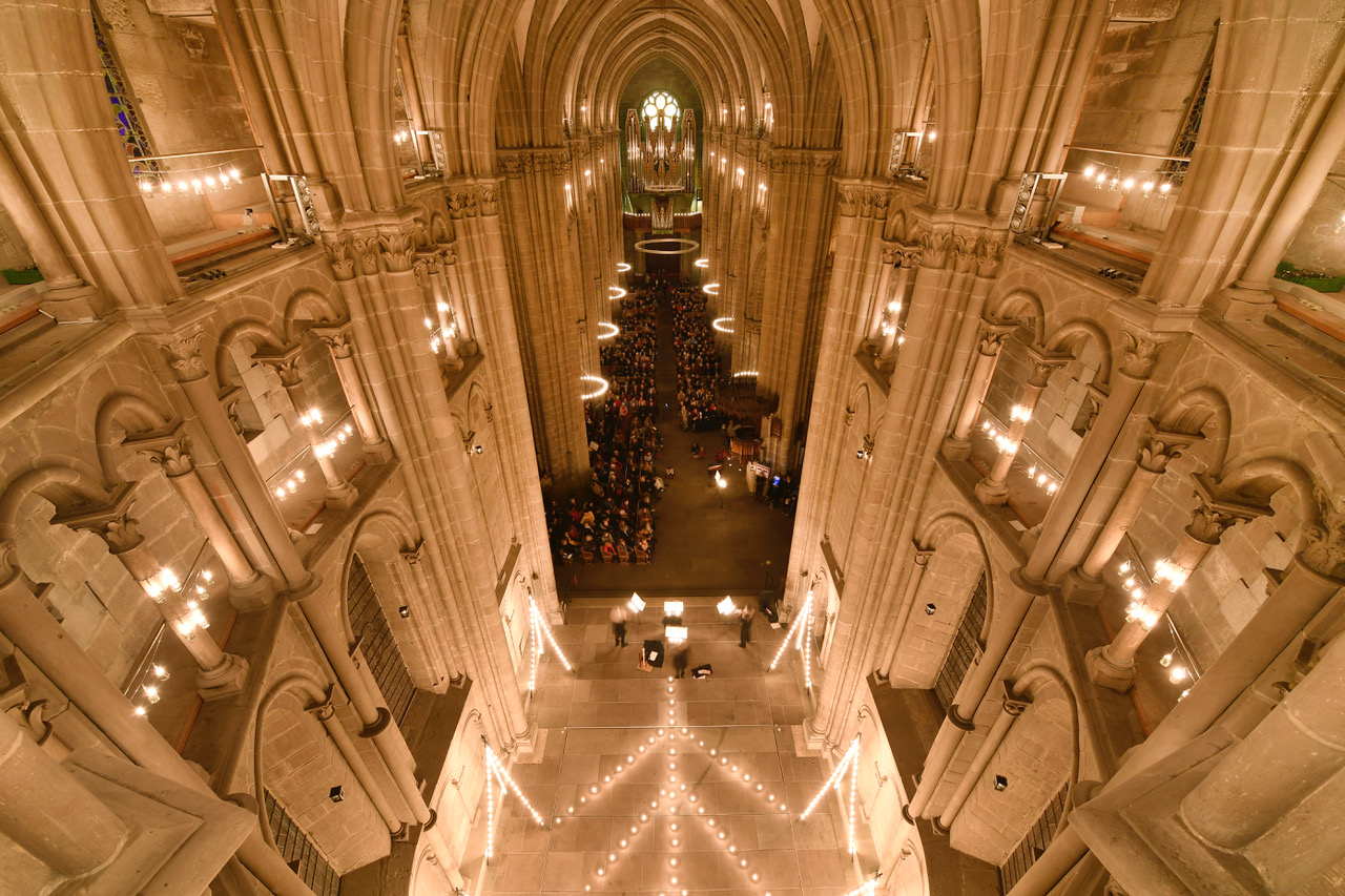 Les 20, 21 et 22 novembre 2025, Saint-Pierre en Lumière embrasera une nouvelle fois la Cathédrale Saint-Pierre grâce à la douce lumière de plus de 2 000 bougies sublimant l’architecture du bâtiment.